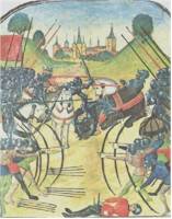 The consequence of the loss of the French territories was that the Royal House of Lancaster became discredited. A series of coups and counter-coups, intrigue and murder gripped the throne. A litany of kings came and went between the battle of St Albans in 1455 and the battle of Bosworth in 1485. The result was a new royal house - the Tudors. Henry VII seized the throne on winning the battle of Bosworth and England was to enter a new period of history | ![]() |