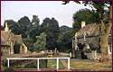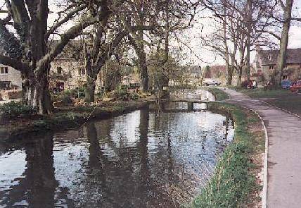 Lower Slaughter, is as the name implies, downstream of Upper Slaughter, and the river is a feature of the village as it flows between neatly mown grass banks. The red brick built corn mill, with its tall chimney and water wheel, contrast with the rest of the village, and its traditional Cotswold stone cottages