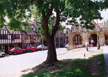 The Jacobean Market Hall, in the centre of the High Street, is now owned by the National Trust. It was built by Sir Baptist Hicks in 1627 to provide shelter for the butter and cheese stalls. The ancient town hall and the memorial cross also share the island in the centre of the High Street